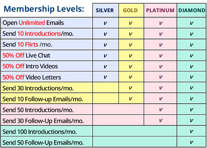 Dream Singles offers a variety of membership plans to cater to different needs and preferences. Starting with the Bronze plan, which is free, you can explore the site and get a feel for its features. The Silver plan costs $9.99 per month and allows unlimited emails and 10 introductions/flirts per month. For more interaction, the Gold plan at $29.99 per month includes everything in Silver plus 20 additional introductions and 10 follow-up emails. The Platinum plan costs $49.99 per month, offering even more communication options. Finally, the Diamond plan at $99.99 per month provides the highest level of access with 90 additional introductions and 40 more flirts per month.